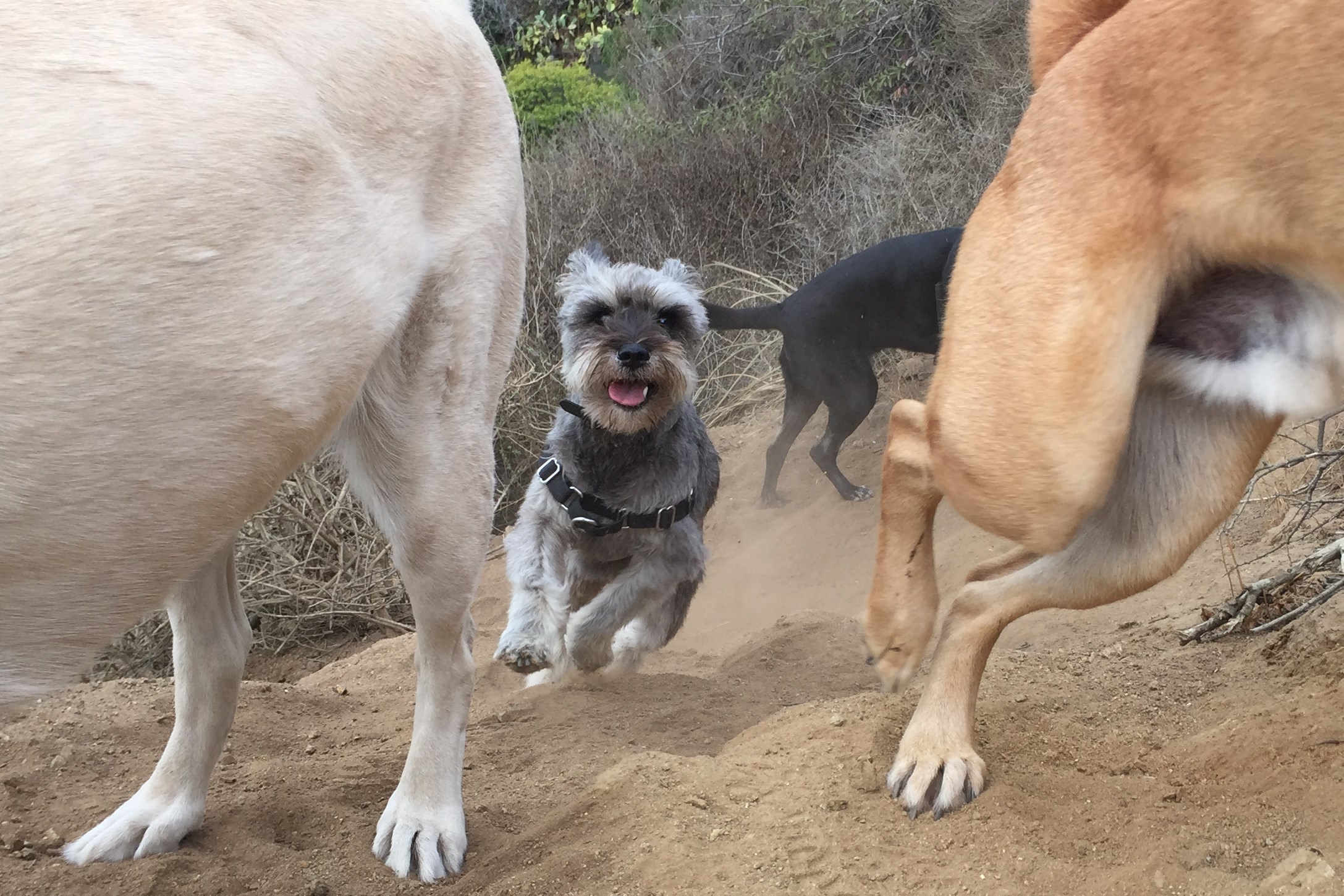 1. Runyon – This is a LEGAL off-leash Dog Adventure. We usually park at the top of Mullholand although you can start at the bottom in Hollywood as well. There are three main roads. The middle road is the paved and easiest. The Spine, or West Trail, is the hardest. Finally, the Stairs, or East Trail, is in between in difficulty. Don’t worry what you take. You can’t really get lost. Pick one way down and the other up! It’s clearly marked when you can take the pups off leash.