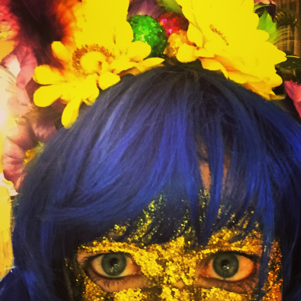 Blue hair and gold mask!