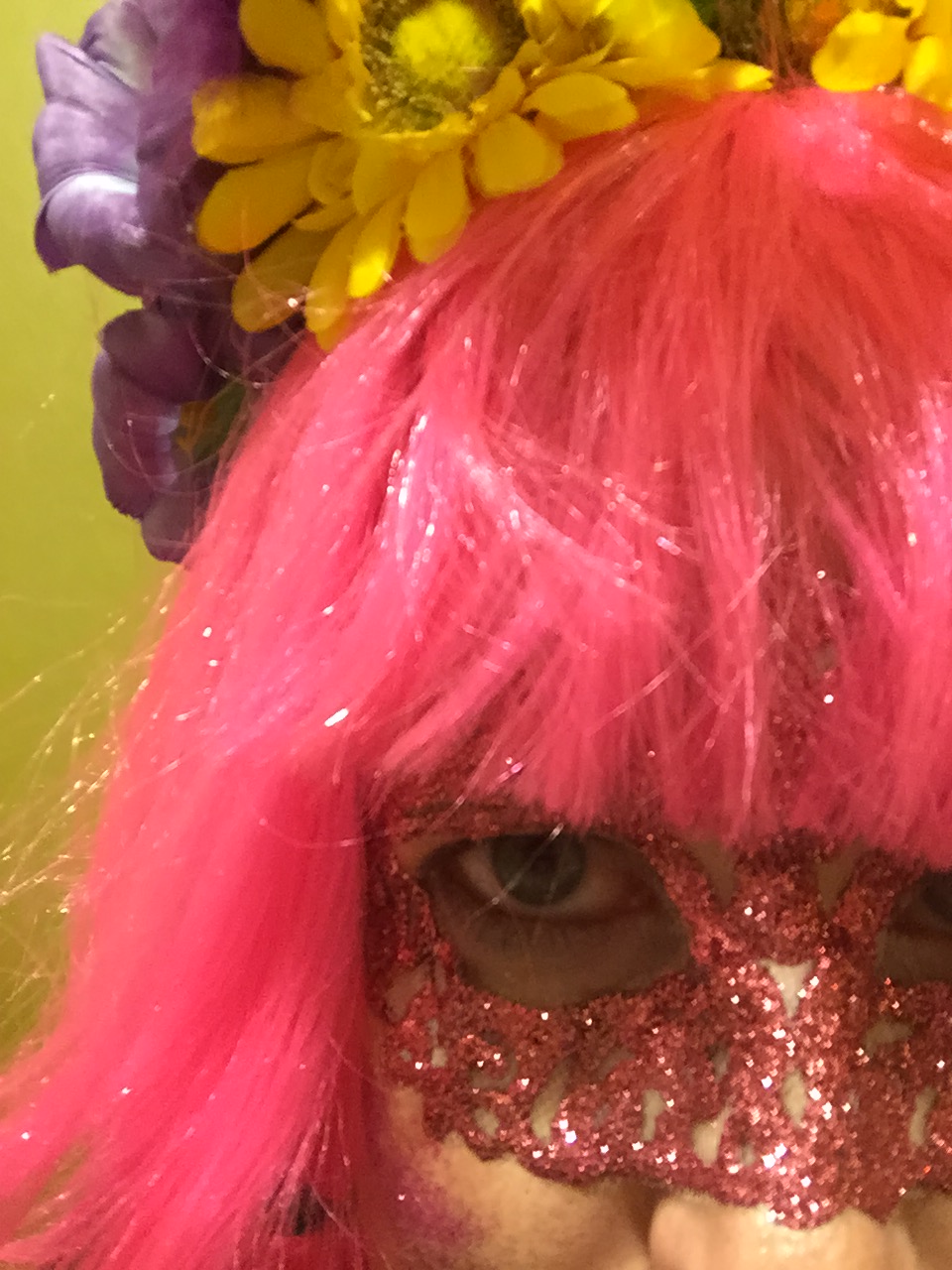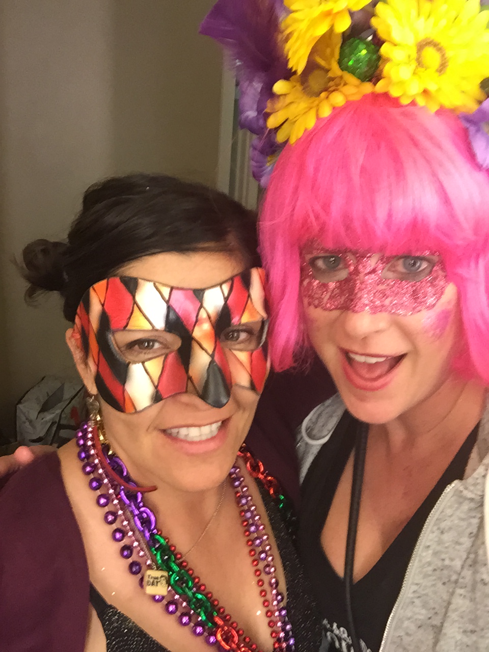 When doing research on the festivities I realized I would be able to dress up EVERY DAY. I immediately did a happy dance and brought down my box of wigs. My biggest concern was that I didn’t have any Mardi Gras face masks. What’s a girl to do?