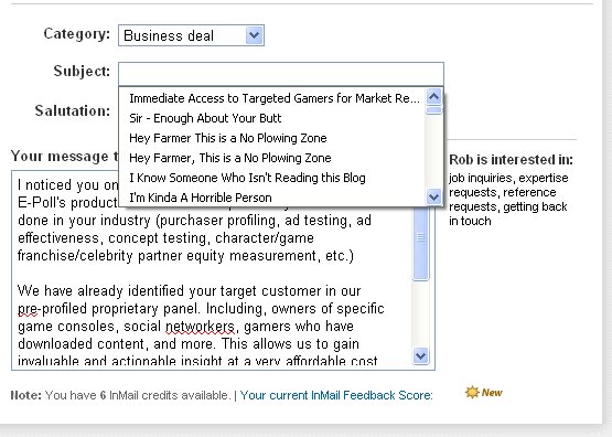 Problem — The subject line section in LinkedIn emails also seems to hold on to my Titles from my blog. So it is ENTIRELY possible that if I’m not careful, and you know I’m not, I’ll send a prospect an email with the title “Sir-Enough About Your Butt.”