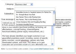So one of the things I do on my computer is work. One of the other things I do on my computer is write this blog. One of the cold calling/networking sites I use, LinkedIn, allows you to email prospects (well if you pay them enough money they allow you to email prospects). I’m convinced it is useless but my boss swears by it so I do it. I usually email a group of folks (in this case those that are in the “gaming” industry) a quick intro to our services and request to meet or have the info passed on to a more appropriate contact. Here’s the thing. These “blast” emails are somewhat useless so, although I do them, I tend to use the same wording over and over. Luckily for me most of the sections you have to fill out save what I’ve written before. All I do is click in the area that says “contact phone number” and my number pops up. Tada!
