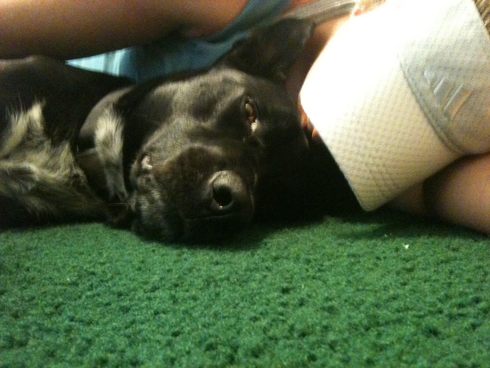Mid day run in LA in July = giant sweaty mess! I had no choice but to plop down next to Riggins on the floor to regain my breath, let the sweat dry a bit, and get my heart rate down.