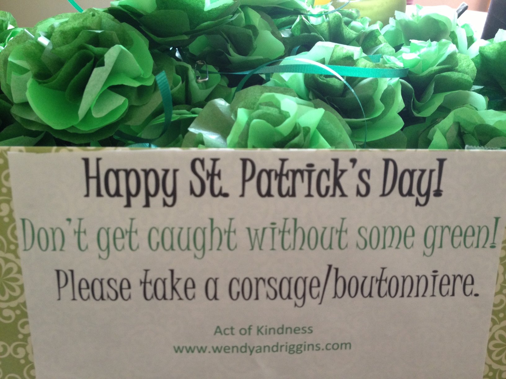 St. Patrick’s Day is just around the corner and since my weekend is full up of green alcohol fun I dropped of one of my themed Wendy Bombs of Kindness today.