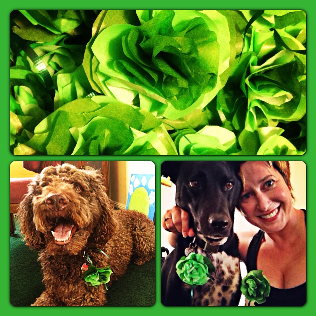 (Once again I forced boy dogs to model flowers. I told Morgan and Riggins they were boutonnieres and very fashionable for the hip gentleman.)