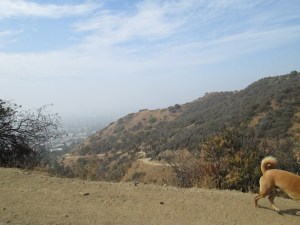 A few weeks ago my good friend Robyn was visiting from Kansas where she lives with her husband and darling kitty. During her vacation she wanted to hike Runyon. Riggins, who loves to be the center of attention with any human, was happy to meet up with Robyn to play tour guide. Once home Robyn blogged about her doggie hiking adventure and was nice enough to let me re-post it here on WendyandRiggins.com for you to enjoy (head on over to her blog to read more about her and he adventures). Take it away Robyn!