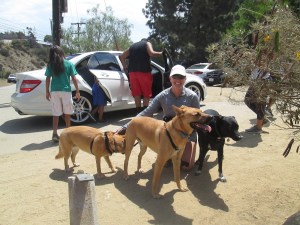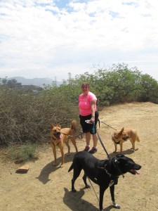She had her awesome dog, Riggins, and 2 guests..Bear and Jax. I loved that we did this hike with the dogs!! Runyon Canyon is dog friendly and for most of it the dogs are allowed to be off leash. I had the honor of walking Riggins when he had to be on leash 🙂