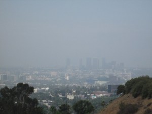 A foggy view of Park La Brea. A housing community in Hollywood