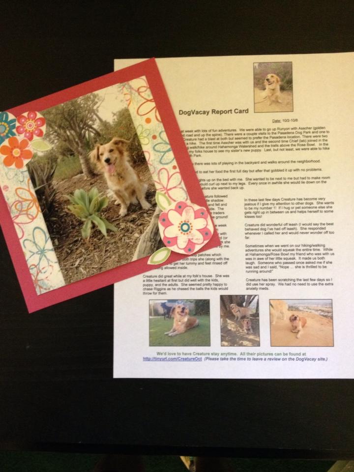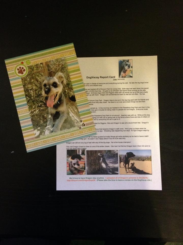 During my dog sitting business I’ve watched a lot of dogs and most of them come back to stay more than once.  Some, like Dragon (schanuzer) or Asscher (golden retriever), are with me enough that I remember their personalities, likes and dislikes without having to reference anything.  Others like Vesper (german shepherd), I have to be reminded about their personalities and special individual needs.  Luckily when a dog leaves me to go home he/she gets a “Report Card” that reviews what we did during his/her stay and a few stories about the dog and his/her interactions.  When a dog is coming back I don’t fully remember I look back at their old report card and end up giggling all the way through it.  I find all these dogs so amusing!  Here are a few snipits from these write-ups:
