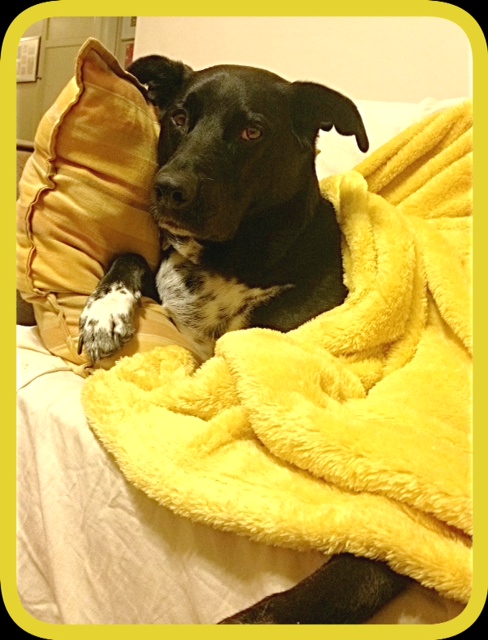Riggins chillin’ on the “locked” bed. I had just gone running which makes me sweaty and delicious.