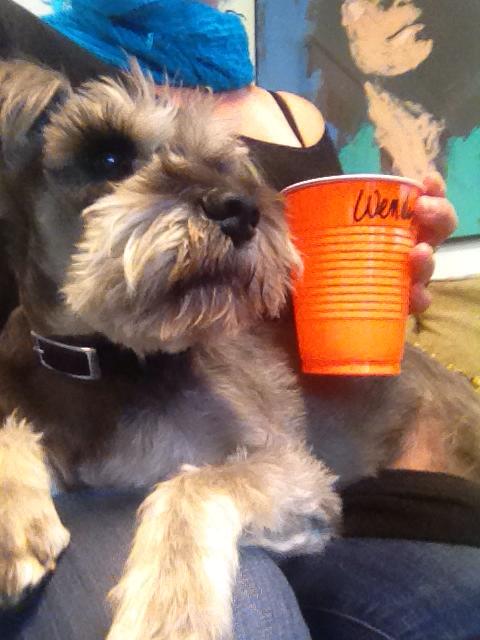 The Super Bowl to me is a time to chat with friends and eat a bunch of bad for you stuff. That is what I did. I went to my friend’s Super Bowl party fully prepared to watch the game. Honestly I gave that up before it even started. I had brought Dragon over with me to enjoy the festivities. He’s a good party companion. We started in the garage/back yard (aka the main TV viewing location) but then I got hungry and I wanted to see what new food had appeared so I headed to the kitchen. Someone brought taquitos and I had to have some of those so I hovered around there for a bit. Then I wanted my phone, to take pictures of Dragon in party mode. I had to go into the kids room where my purse was and got involved in a conversation about whatever cartoon was on TV. I took some pictures of Dragon and sat back down to watch the game only to realize I had left my giant bottle of sparkling water in the kitchen so I had to go back to get that but on the way I cruised by the bar and saw that someone had brought pre-mixed margarita drinks. I’m not one to say no to a margarita so I poured myself one of those and forgot all about my water and sat back down. Then I remembered my water and got back up and realized they were watching the game in the