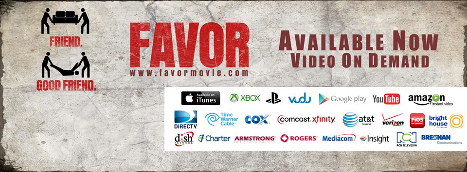Favor has done very well on the festival circuit but that audience is limited to those who … well … go to festivals. Let’s face it that’s probably not you (and me). Team Favor has worked very hard to make it so their movie is available to the masses (aka you and me). According to the picture I stole from Favor‘s Facebook page it is now available on every VOD platform that exists. Most folks tend to flock toward iTunes. Favor is doing very well there and even I, in my odd anti-iTunes ways, could easily find it on the TOP MOVIE CHARTS. That’s right. My friend’s movie is right there at #48 (as of right this minute) tucked nice and cozy between Labor Day and Bad Country. It’s my understanding it is much higher in the genre specific charts but I didn’t look. I trust the Favor folks and didn’t feel the need to verify it.